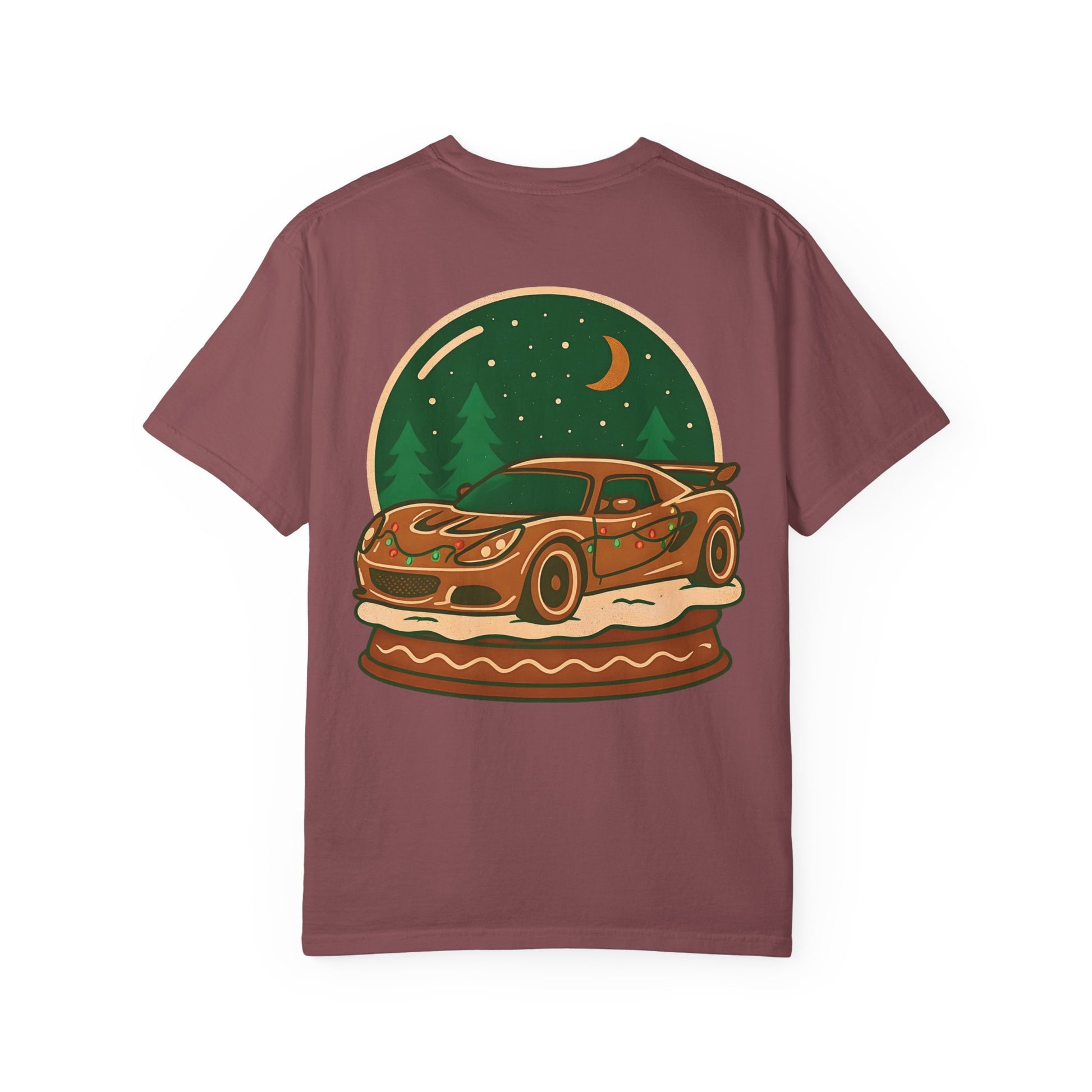 This holiday tee brings together the warm, spiced charm of gingerbread and the raw energy of track-day culture. Imagine the tang of molasses and cinnamon traded for the roar of an engine — a limited-edition design that wears like a favorite memory. The soft, garment-dyed cotton settles into a lived-in drape, the relaxed fit letting you slide in after wrenching under the hood or crowding around a pit lane. Racing enthusiasts will recognize the nod to track beasts and holiday livery, while the vintage color and stitched details give it an authentic, automotive-club vibe. Wear it at winter meets, evening cruises, or casual garage nights to blend seasonal cheer with a racer’s grit.